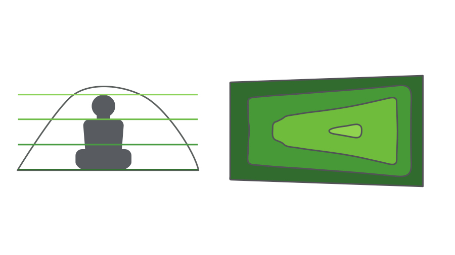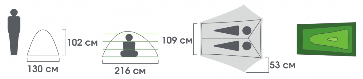 Топографічна карта намети показує житловий простір на різних рівнях — стать, стегна, плечі, голова що набагато більше каже про реальних габаритах і зручність.
