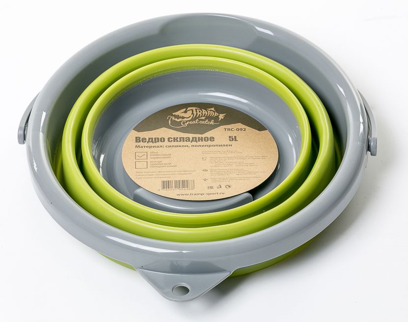 Відро складне силіконове Tramp об'ємом 5 літрів. Відро зроблено з міцного і еластичного харчового силікону, його можна використовувати для продуктів, рідин, підходить для холодних і гарячих речовин, витримує окріп. Жорстке пластикове кільце обрамляє верх відра разом з складаний пластикової дужкою рукояткою. Буде корисним у туристичних походах, у кемпінгу, на пікніках, на дачі, риболовлі, пляжі і просто відпочинок на природі.