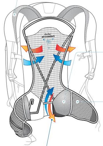 - максимальна вентиляція в системах Aircomfort значно знижує виділення тепла. За даними наукового дослідження, проведеного відомим інститутом Хохештайн (Hohenstein Institute), оптимальна вентиляція спини знижує потовиділення на 25%.