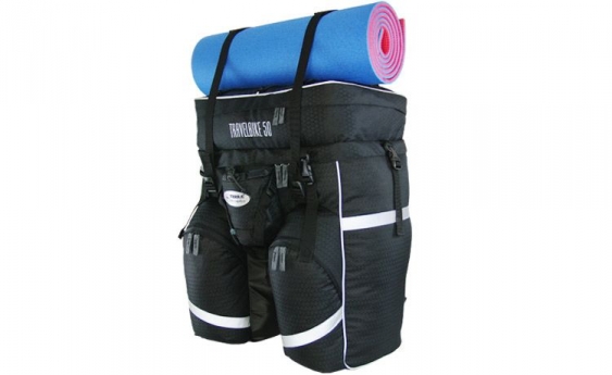 Практичний однооб'ємний велорюкзак, велосумка на багажник велосипеда "штани" Terra incognita TravelBike об'ємом 50 літрів для далеких велоэкспедиций. Передбачені лямки для перенесення на спині, забираються в спеціальні кишені. Завдяки гнучкій конструкції кріплення за допомогою застібок "FASTEX" підходить для задніх багажників практично будь-якого розміру. Забезпечений непромокальним чохлом від дощу, світловідбивачами ззаду і з боків. Дно і частини, звернені до багажника і коліс, посилені жорсткою миється тканиною і продубльовані ущільнювачем.