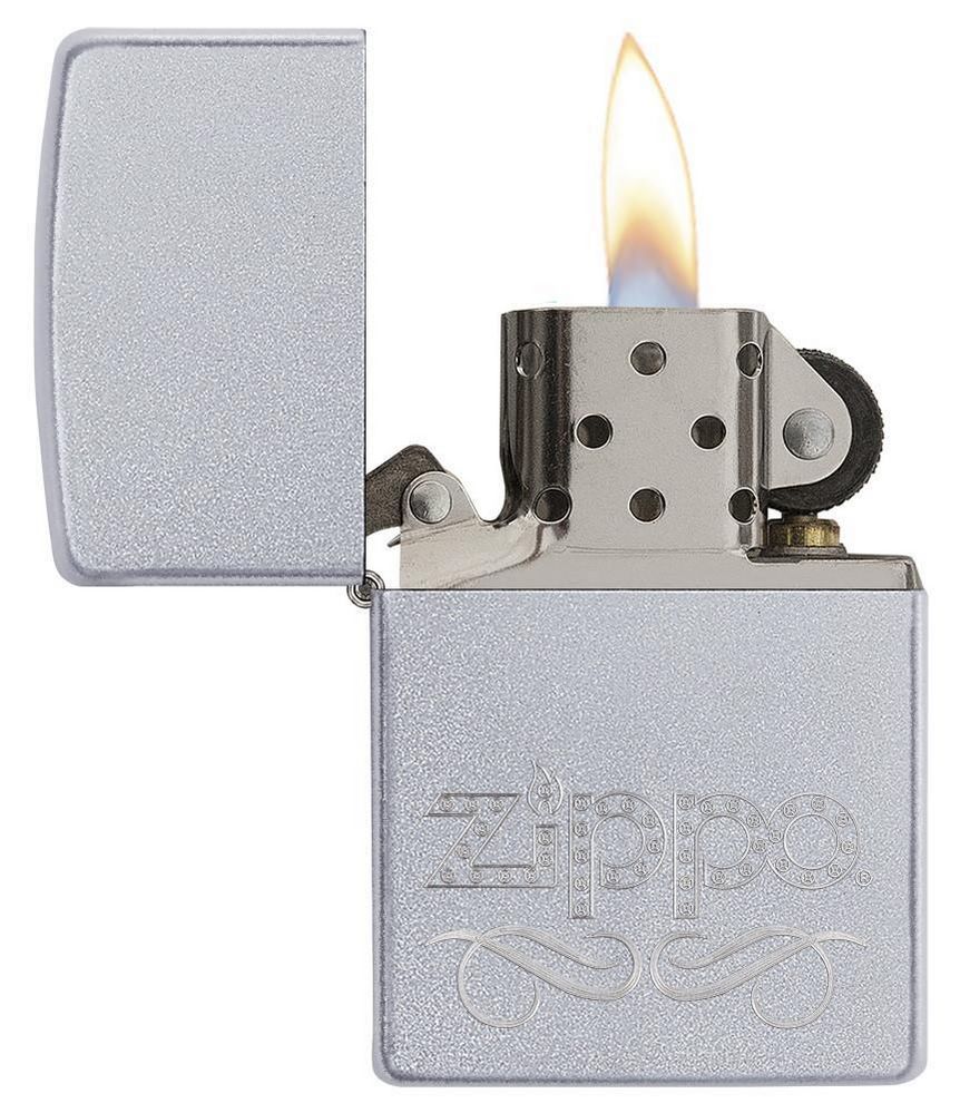 Оригінальна запальничка Zippo Scroll, класична хромована сатинировой обробкою, має фірмовий логотип Zippo з заклепок і візерунок сувоїв. Поставляється в подарунковій коробці і є шикарним подарунком для чоловіка на будь-яке свято, ювілей. Для досягнення оптимальної продуктивності заправляйте запальничку фірмової горючою рідиною Zippo.